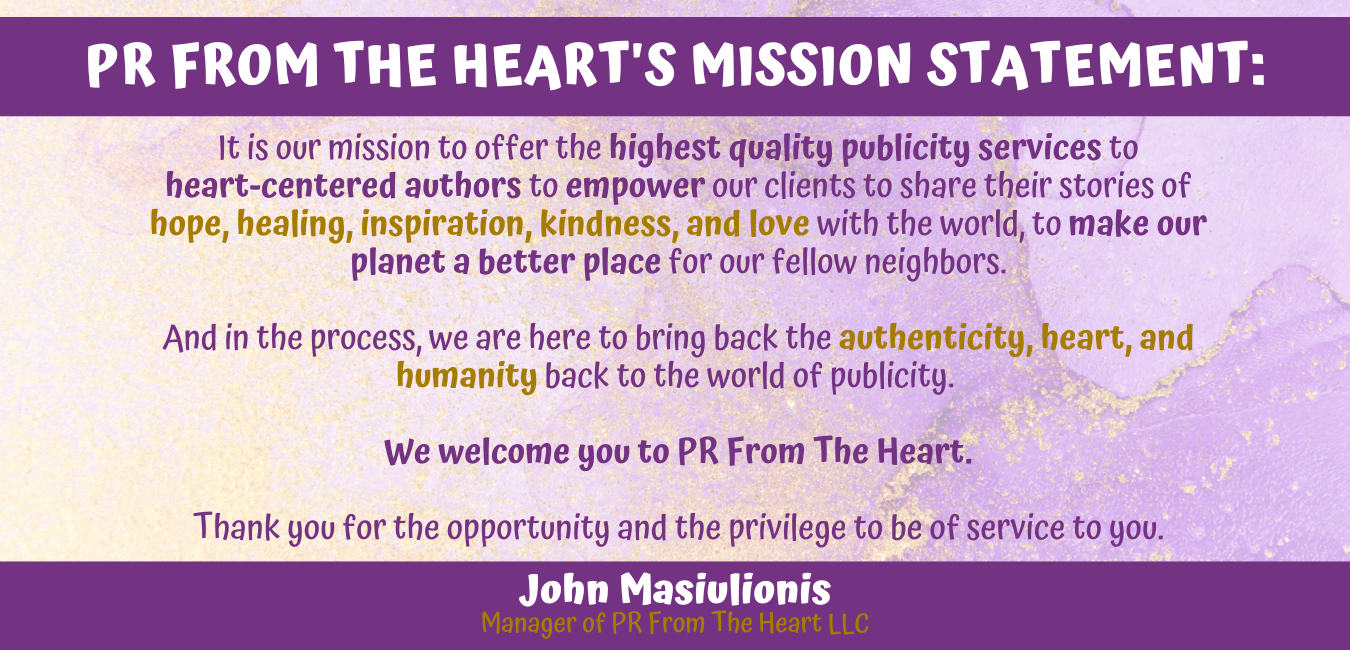 I wholeheartedly recommend PR From The Heart to anyone looking to promote their work. John’s dedication, expertise, and passion for storytelling truly sets him apart. John: You are one in a million, and I thank you for helping bring my dream to life!