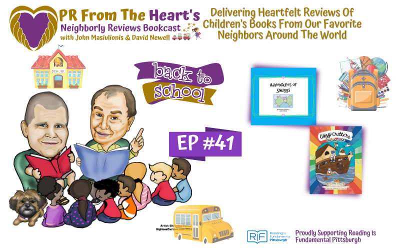 We cordially invite you and your little ones to join David Newell (who played the beloved Mr. McFeely on Mister Rogers’ Neighborhood), along with our John Masiulionis and Little Forrest, for Episode #41 of PR From The Heart’s Neighborly Reviews Bookcast, as they share Ashley Donegan’s Adventures of Snuggs and Michael and Nicole Collazo’s Cozy Critters on the Ark.