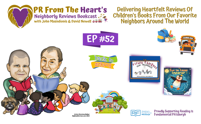 We cordially invite you and your little ones to join David Newell (who played the beloved Mr. McFeely on Mister Rogers’ Neighborhood), along with our John Masiulionis and Little Forrest, for Episode #52 of PR From The Heart’s Neighborly Reviews Bookcast, as they share Ashley Donegan & MT’s Pirate Chickens Under Attackkkkk!!! and Pamela Gray Willcox’s Tux the Little Emperor.